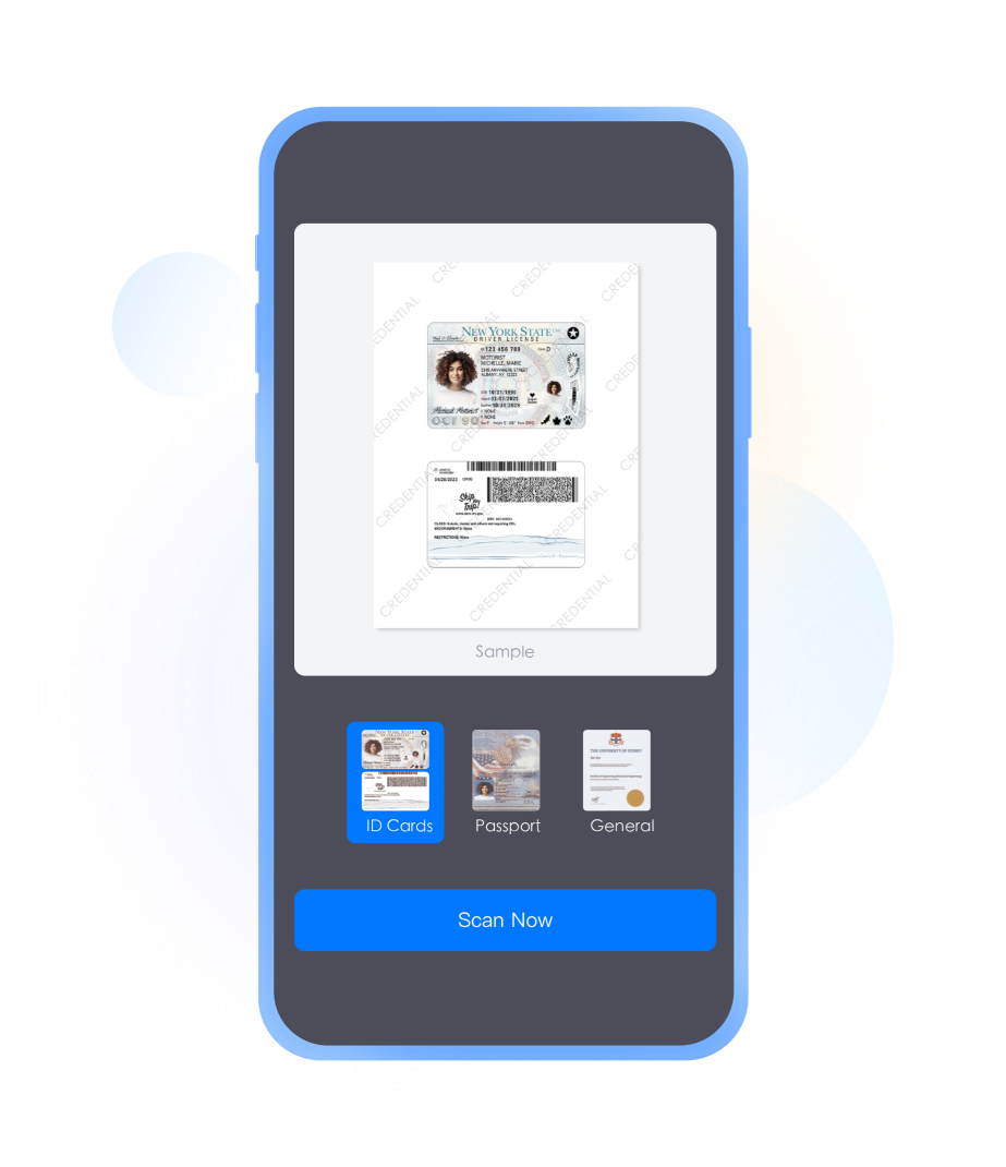 Scan ID cards, driver's licenses, and passports, and convert them into electronic versions that can be easily stored, shared, and printed.